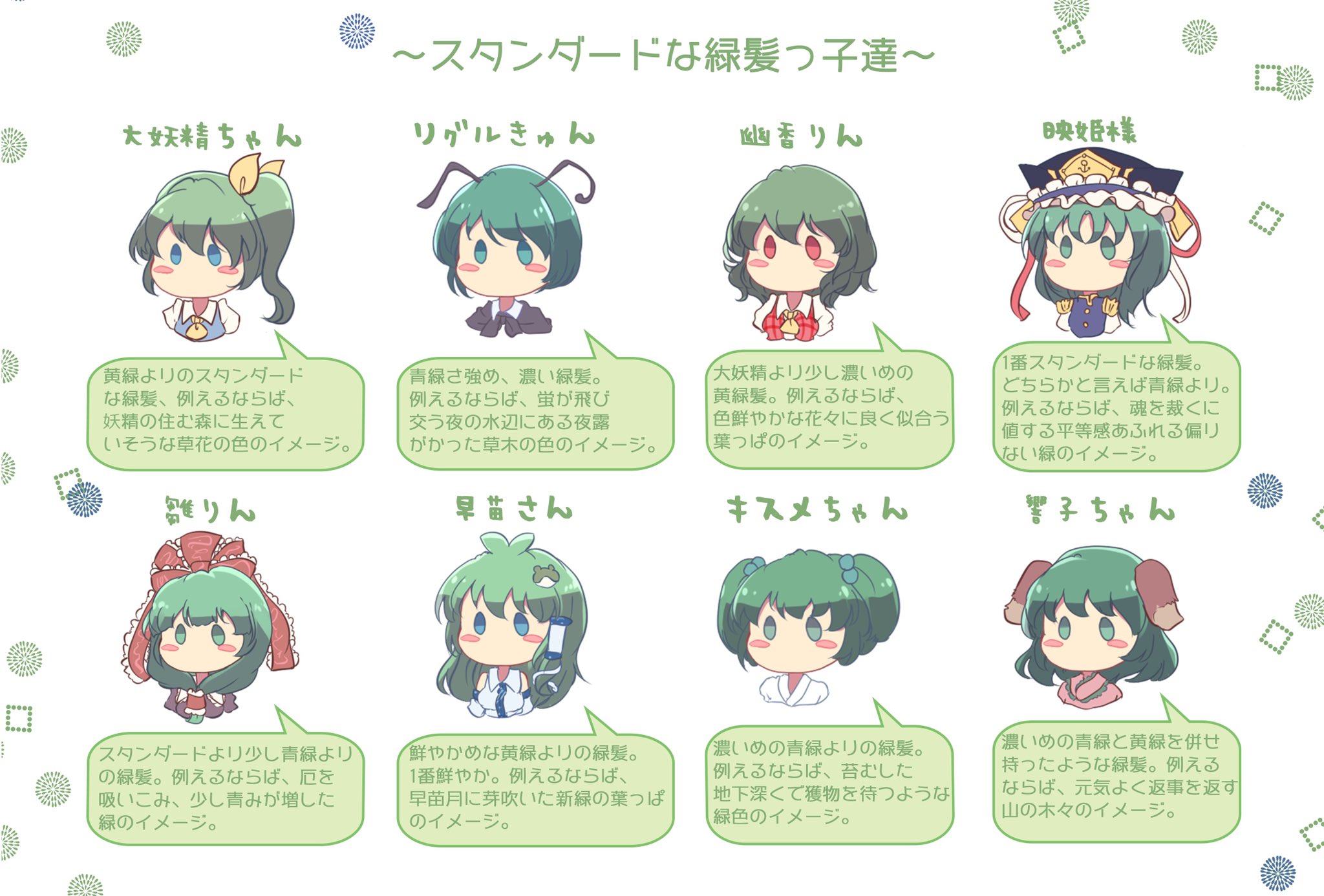 けも ちはる Skeb依頼募集中 Win版の 東方緑髪っ子の緑色 の深さについて考えた末に出来上がったプレゼン資料です グラフ化と解説で計3枚 正統派プレゼン資料って感じですね 緑髪っ子は いいぞ
